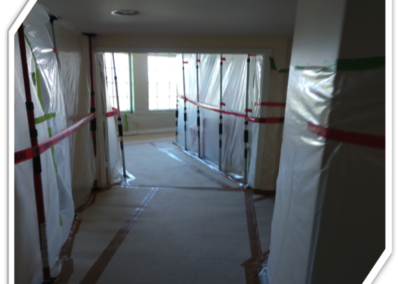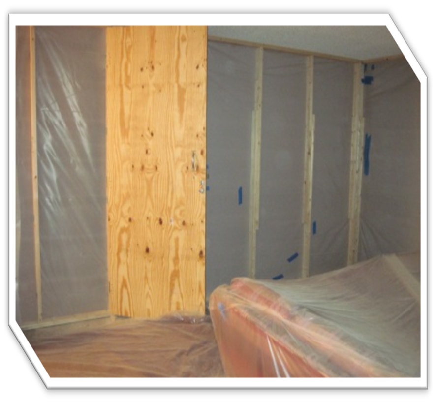 - Interior walls, floors, furnishings, etc. are covered for protection